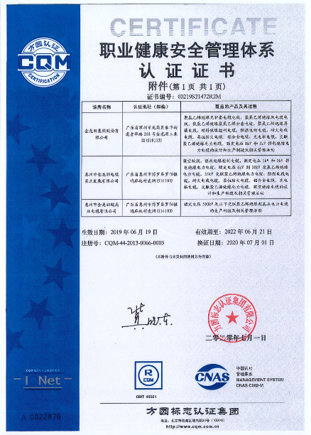 职业健康安全管理体系认证证书
