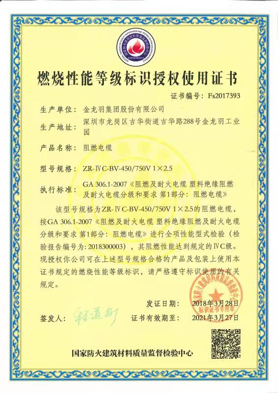 燃烧性能等级标识授权使用证书